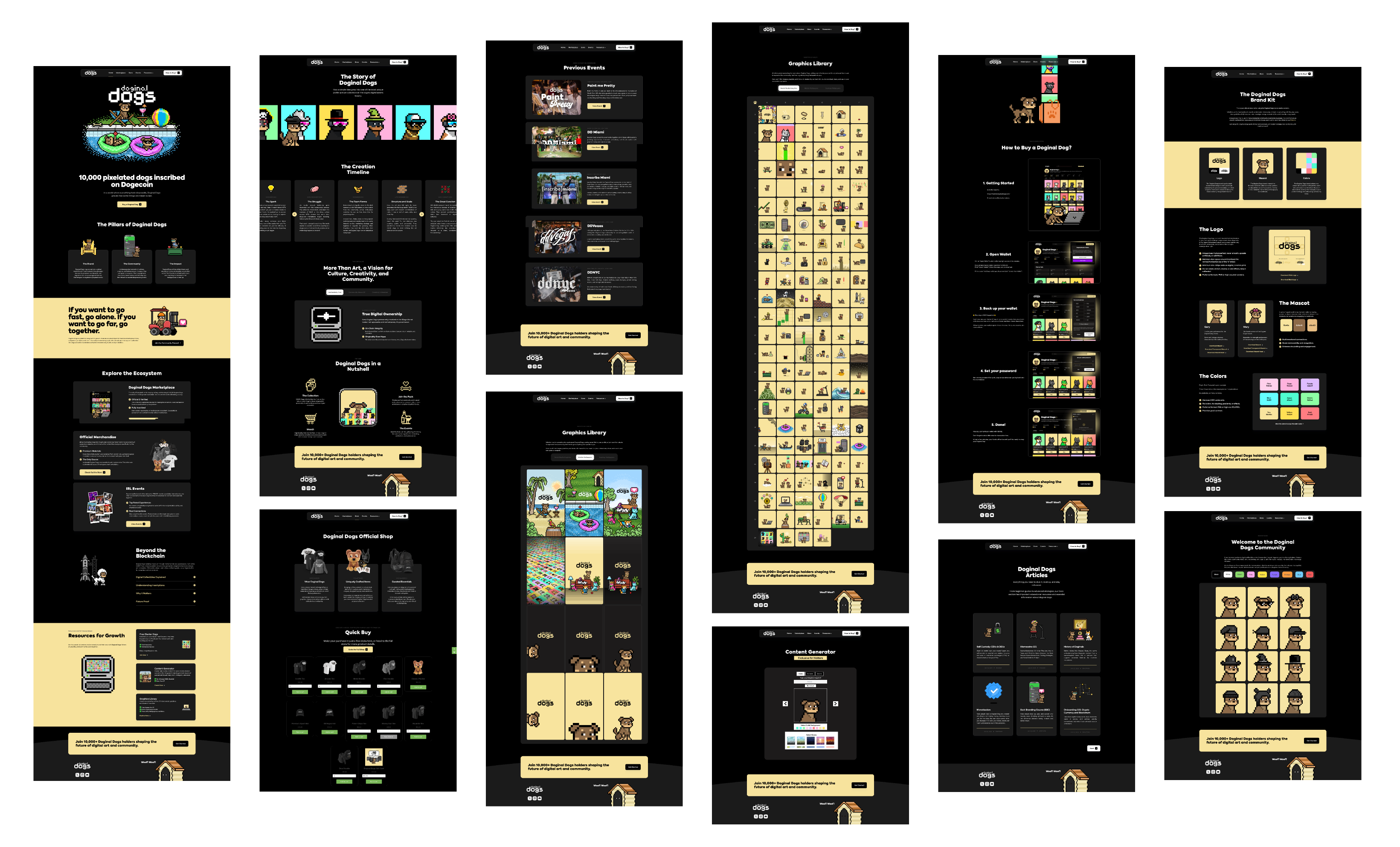 Doginal Dogs didn't just get a rebrand, it got a completely new web presence. I built both versions. V1 launched the project and got it off the ground. V2 reflected what the community had grown into, a serious, globally recognized Web3 project with real world activations, merch, and a network of holders that deserved a site to match.